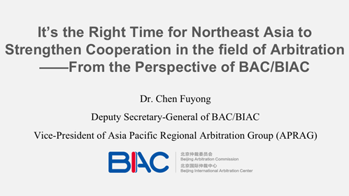 陈福勇副秘书长以“加强东北亚地区仲裁领域的合作正当其时”为主题,详细介绍了北仲的基本情况、涉日韩仲裁案件情况、涉日韩仲裁员情况以及与日韩各界长期保持友好交流的情况。
