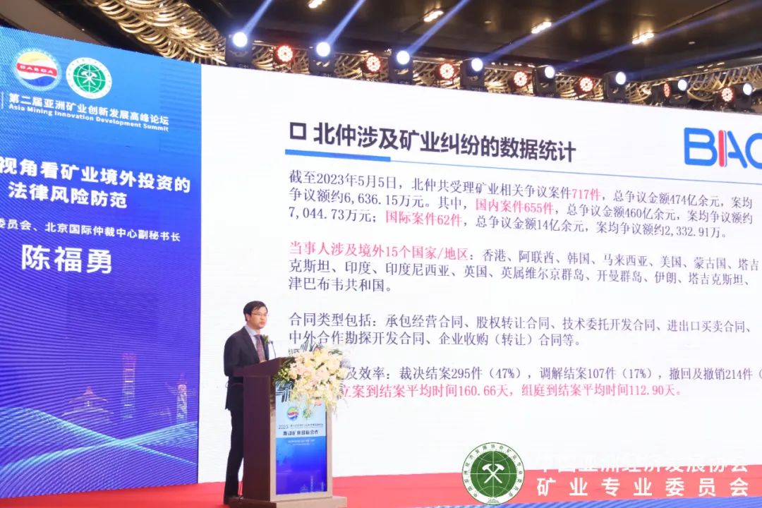 5月9日,由中国亚洲经济发展协会和中国亚洲经济发展协会矿业专业委员会举办的“第二届亚洲矿业创新发展高峰论坛”在北京举行,北京仲裁委员会/北京国际仲裁中心副秘书长陈福勇受邀在论坛上作主题发言。
