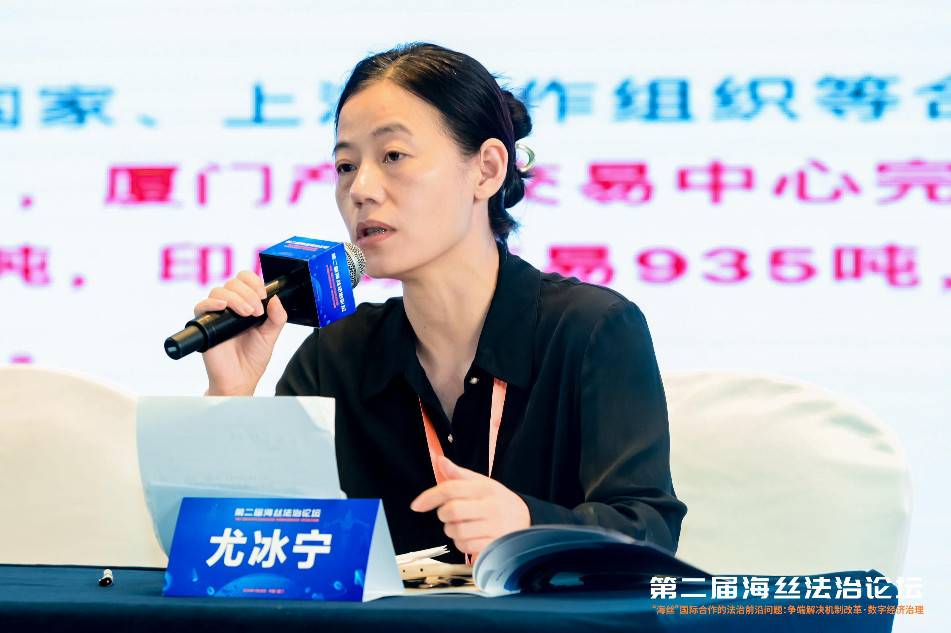 第二位点评人是厦门金圆投资集团有限公司法务部总经理尤冰宁。尤冰宁女士认为《中国国际贸易争议解决年度观察(2023)》很好的把握了行业热点,具有一定的前瞻性。她结合自身工作经历,分享了她对于当前国际贸易规则深刻转变及全球贸易体系重塑的看法,她建议我国企业应当更加关注国际贸易规则和争议解决机制的安排,提前谋划、科学应对。