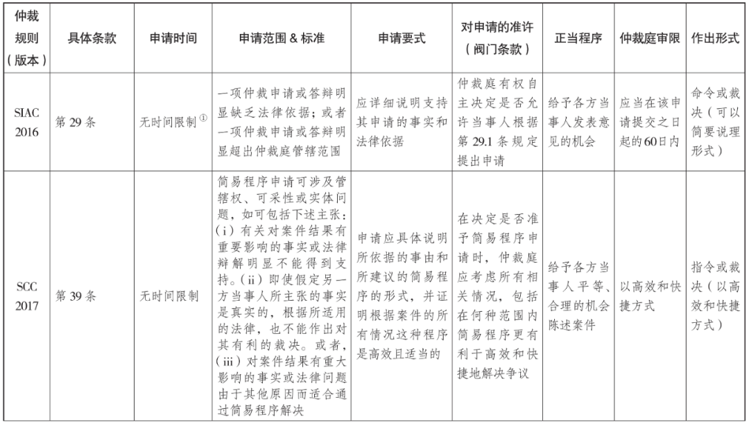 为了更好地规范仲裁庭的裁量权行使,对仲裁当事人程序预期加以引导,并降低仲裁庭和当事人的种种顾虑,早期驳回程序正不断从昔日不成文的仲裁实践和程序管理技巧状态朝成文的、类型化的状态演进。时至今日,早期驳回程序目前已在下述领域完成类型化和成文化升级。除了诉讼程序和国际仲裁规则(作者将在下文详述),早期驳回程序还可见于部分国内仲裁规则、国际投资仲裁规则,乃至国际/区域性经贸协定之中。譬如,在2002年新加坡国际仲裁中心(Singapore International Arbitration Centre,以下简称SIAC)国内仲裁规则,2013年AAA商事仲裁规则,2014年美国司法仲裁调解服务股份有限公司(Judicial Arbitration and Mediation Services, Inc.,以下简称JAMS)仲裁规则(JAMS Comprehensive Arbitration Rules & Procedures),2006年国际投资争端解决中心(The International Centre for Settlement of Investment Disputes,以下简称ICSID)仲裁规则,2022年ICSID仲裁规则,2016年SIAC投资仲裁规则,以及2017年中国国际经济贸易仲裁委员会(China International Economic and Trade Arbitration Commission,以下简称CIETAC)投资仲裁规则中均设有早期驳回程序。除此之外,多米尼加共和国、中美洲与美国自由贸易协定(Dominican Republic-Central American Free Trade Agreement),欧盟—加拿大综合经济与贸易协定(EU-Canada Comprehensive Economic and Trade Agreement, CETA),以及跨太平洋伙伴全面进步协定(Comprehensive and Progressive Agreement for Trans-Pacific Partnership, CPTPP)中亦有将早期驳回程序类型化和成文化。考虑到仲裁早期驳回程序类型化和成文化的时间相对较短,在已披露仲裁案例有限的情况下,下文将采取比较法的研究思路,即参考不同的仲裁文本,并借此归纳早期驳回程序于规范层面的潜在适用规律。