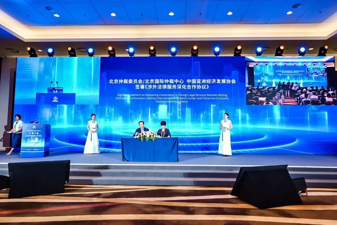 北京仲裁委员会委员兼秘书长姜丽丽与中国亚洲经济发展协会会长权顺基签署了《涉外法律服务深化合作协议》。
