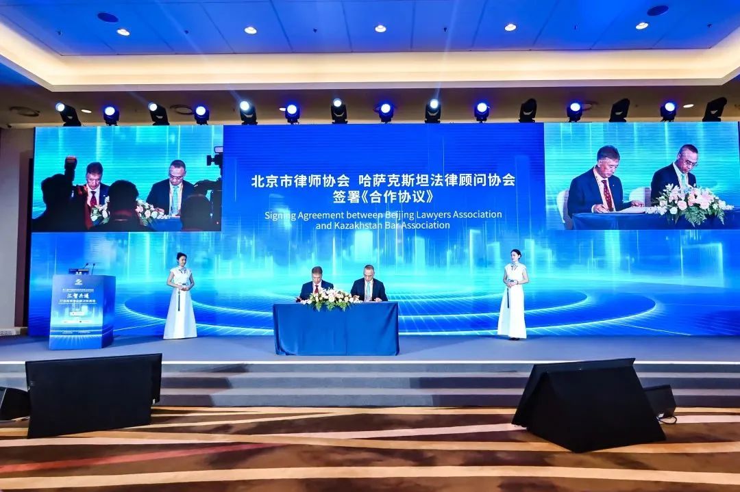 北京市律师协会副会长王清友与哈萨克斯坦法律顾问协会会长朱玛盖迪·萨肯诺维奇·叶柳巴耶夫签署了《合作协议》。