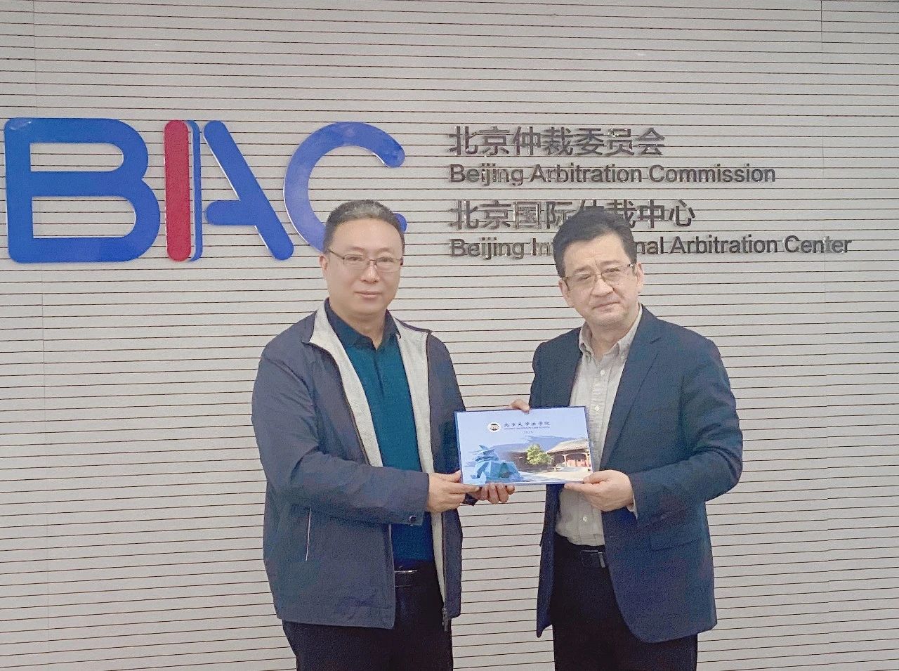 11月3日上午,北京大学法学院国际仲裁项目师生代表团(以下称代表团)到访北京仲裁委员会/北京国际仲裁中心(以下称北仲),北仲主任郭卫接待来访,双方就法律硕士专业学位(国际仲裁)研究生培养及涉外法治人才协同培养机制进行座谈交流。