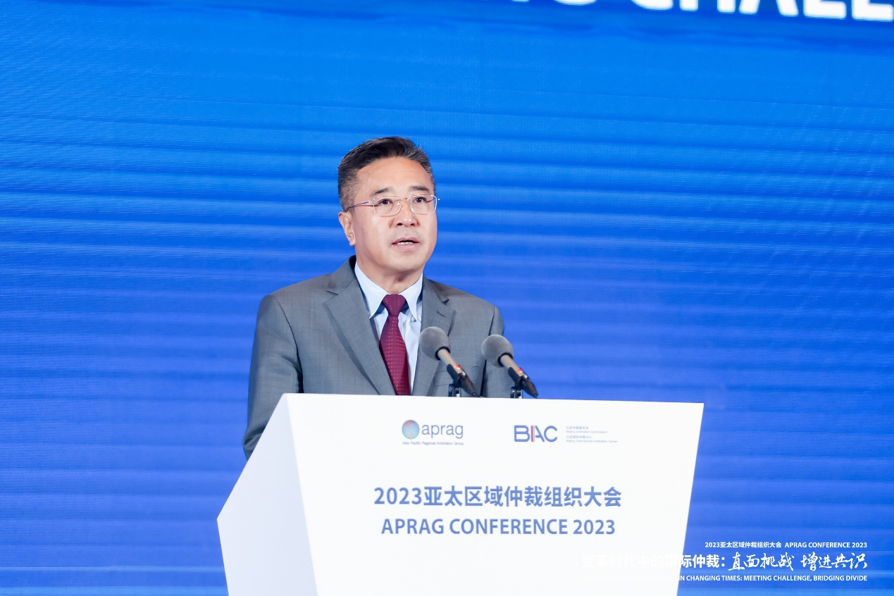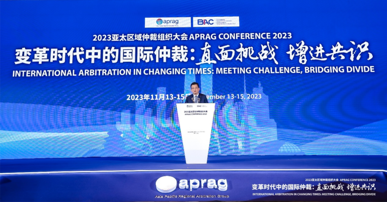 2023年11月13-15日,2023年亚太区域仲裁组织(APRAG)第八届大会在北京成功召开。本届大会由北京仲裁委员会/北京国际仲裁中心(以下称“北仲”)主办,主题为“变革时代中的国际仲裁:直面挑战、增进共识”。14日上午,APRAG大会举行了隆重的开幕式。司法部部长贺荣,北京市委副书记、市长殷勇出席开幕式并致辞。最高人民法院审判委员会副部级专职委员、二级大法官王淑梅,联合国国际贸易法委员会秘书长安娜·乔宾·布莱特发表开幕式主旨演讲。亚太区域仲裁组织主席代表马基霍恩·坎佩拉诺特代表上届大会主席致辞。开幕式由APRAG第八届轮值主席、北仲主任郭卫主持。
