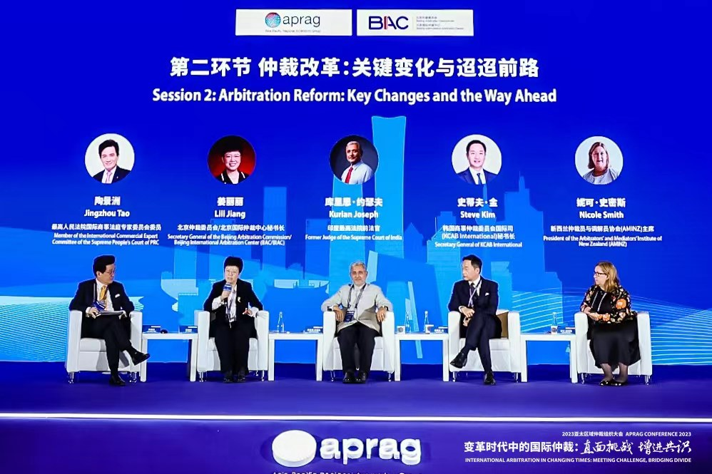 姜丽丽围绕中国商事仲裁制度的最新改革与发展主题,介绍了中国仲裁制度概况,分享了中国仲裁法律制度最新改革动态与仲裁实践数据,并结合亚太区域在全球经济发展中的重要影响,分析了亚太市场对多样化仲裁服务蓬勃发展的需求,并强调随着全球仲裁中心向亚太转移,北京作为引领中国仲裁发展的首善之区,愿与亚太区域的仲裁组织一起,共同推动亚太仲裁高质量可持续发展。Kurian Joseph支持中国为亚太区域商事仲裁发展继续发挥领先作用,详细介绍了外国裁决在印度法院的承认与执行情况;分享了司法制度对于印度仲裁生态塑造的影响,就商事仲裁的问题提出了司法层面的建议。Steve Kim指出仲裁机构规则的持续变化反映着当今市场趋势,例如第三方资助制度的发展;区块链、人工智能等科技发展也影响着替代性争议解决机制(ADR)未来的完善方向;机构可以采取不同方式打造自己的品牌,共创更广阔的仲裁市场。Nicole Smith分享了新西兰仲裁立法对于联合国贸法会《国际商事仲裁示范法》的补充,比如新西兰仲裁员与调解员协会(AMINZ)代替法院担任仲裁员的默示指定机构、关于保密性的规定。