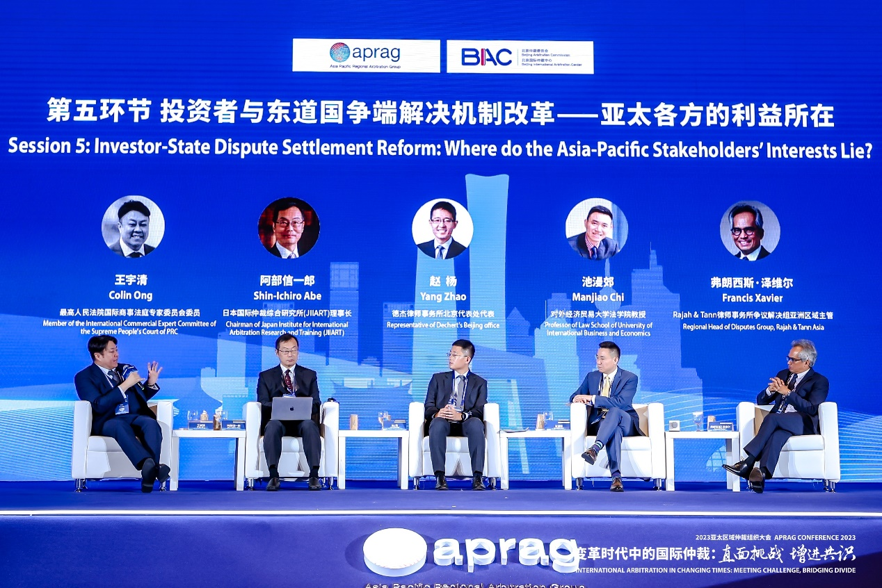 第五环节由最高人民法院国际商事法庭专家委员会委员Colin Ong主持,日本国际仲裁综合研究所(JIIART)理事长Shin-Ichiro Abe、德杰律师事务所北京代表处代表赵杨、对外经济贸易大学法学院教授池漫郊、Rajah&Tann律师事务所争议解决组亚洲区域主管Francis Xavier发言。