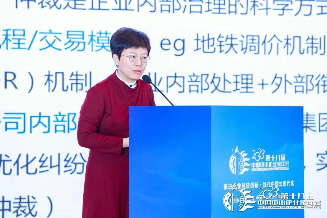 她首先从用户、企业的不同视角,分享仲裁作为企业性价比高且科学的争议解决方式,在商业交易模式中为企业提供的全流程服务。她表示,目前中小企业对仲裁的认知相对有限,只看到冰山一角。仲裁作为一种争议解决机制,为中小企业提供了更高的自主权和参与度。同时,仲裁不仅能高效解决企业之间的商业争议,还能成为企业内部治理的重要方式,通过科学合理的争议预防机制,与企业的自律规范相结合,从源头减少和避免纠纷的产生,满足市场经济和企业成本控制的要求。她指出,在《纽约公约》的背景下,仲裁裁决不仅在国内有效,还可以在全球172个缔约国中得到承认和执行,这符合习近平法治思想强调的国内法治和涉外法治统筹推进的理念。她强调了仲裁在企业走出国门的过程中扮演的核心角色,帮助企业保护自身权益。