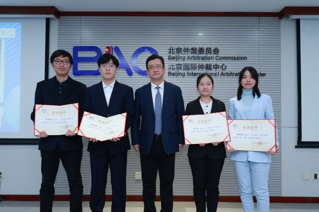中国商事仲裁年度观察(2023)发布会后,北仲举办了第十一届“北仲杯”全国高校仲裁有奖征文大赛颁奖典礼,郭卫宣读了获奖选手名单并向获奖选手代表颁发了奖项。获奖选手代表刘嫡琬、张世超发言。