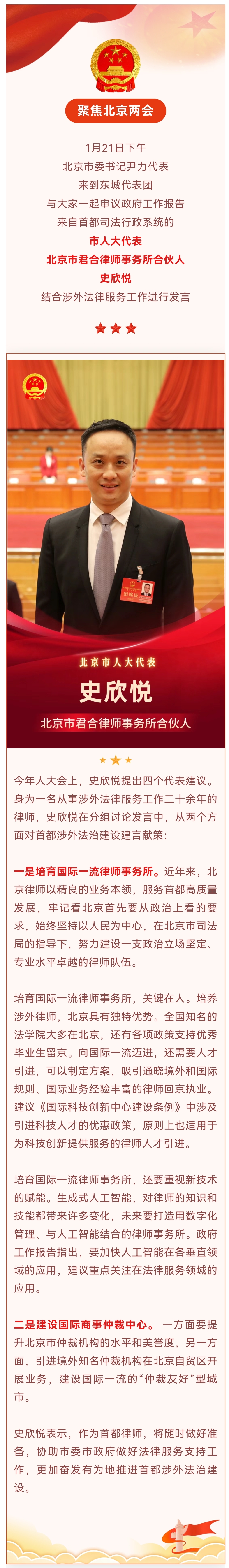 市人大代表史欣悦:培育国际一流律所,推进首都涉外法治建设