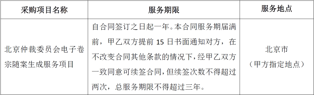 项目名称:北京仲裁委员会电子卷宗随案生成服务项目