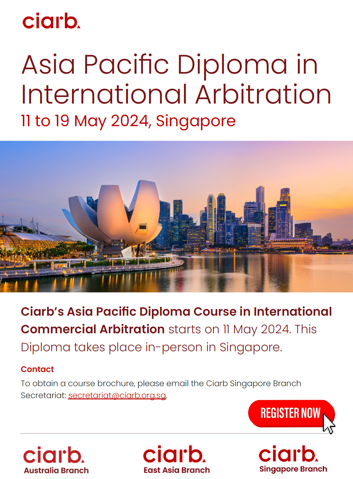 本活动由英国皇家特许仲裁员协会(CIArb) 澳大利亚、东亚和新加坡分会共同主办,将于2024年5月11日至19日在新加坡举行,课程涉及仲裁协议、法律选择、仲裁员指定和临时措施等多个国际商事仲裁热点话题。