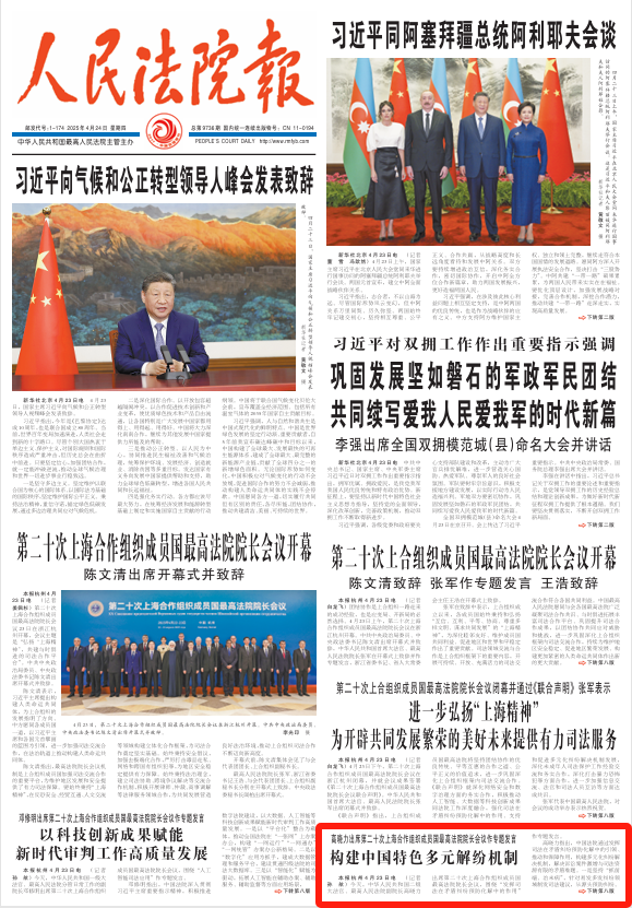 4月23日,中华人民共和国二级大法官、最高人民法院副院长高晓力出席第二十次上海合作组织成员国最高法院院长会议,围绕“发挥司法在矛盾纠纷预防化解中的作用”作专题发言。